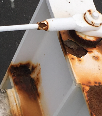 This photo represents a contaminated substrate at time of application. Because all liquid applied coatings are moisture vapor permeable, corrosion continues to manifest beneath the newly applied coating.